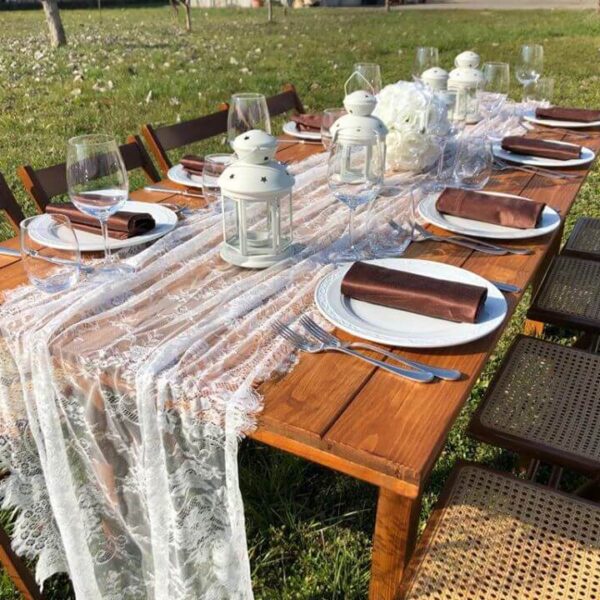 Ogni soluzione è pensata per adattarsi perfettamente agli spazi disponibili, sia in ambienti interni che in location all’aperto come ville, giardini e gazebo. I nostri tavoli sono robusti, sicuri e versatili, ideali per essere abbinati a tovagliato coordinato e sedute eleganti, creando una mise en place armoniosa e